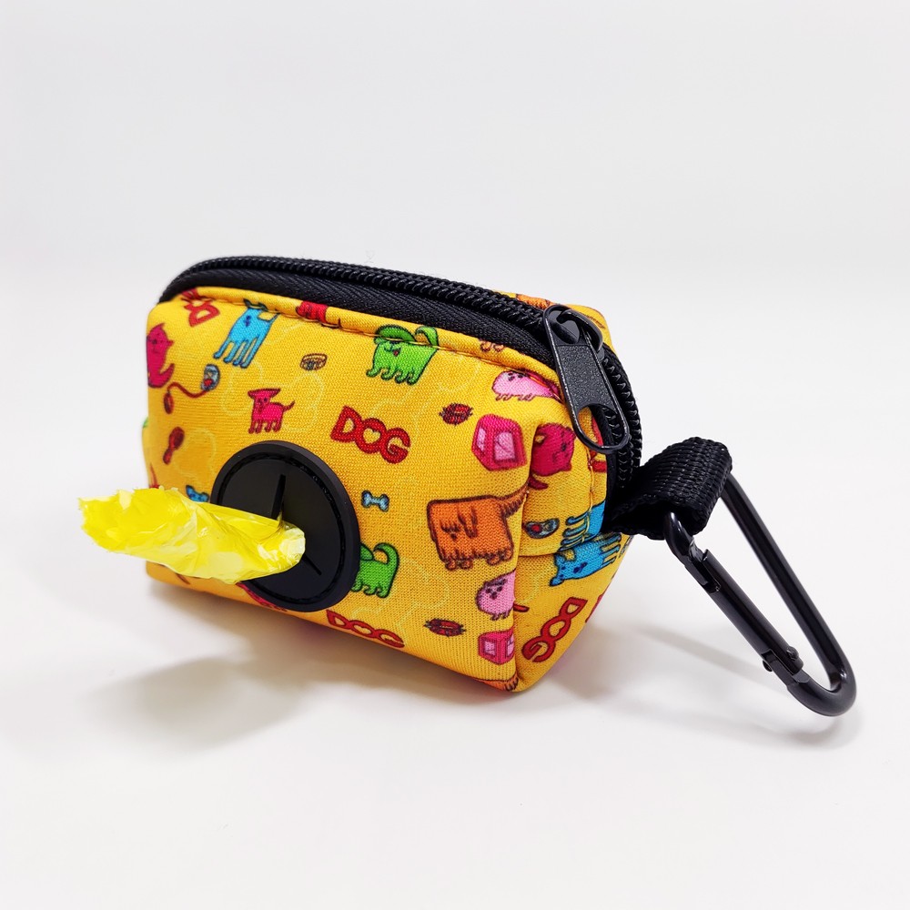 黄色定制热转印图案防水料便携宠物垃圾袋