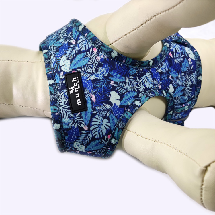 Luxury custom blue neoprene designer dog harness nylon leash
