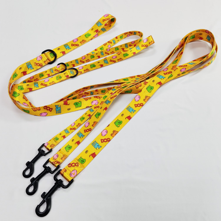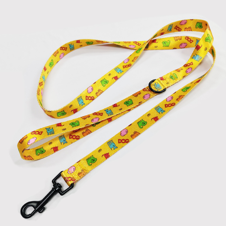Adjustable custom yellow printed dog harness and leash set